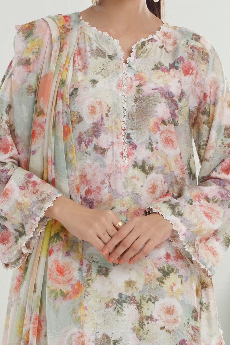 Gul Ahmed 3 Piece Unstitched Printed Pure Bamboo Silk Suit with Printed Chiffon Dupatta BS-52002