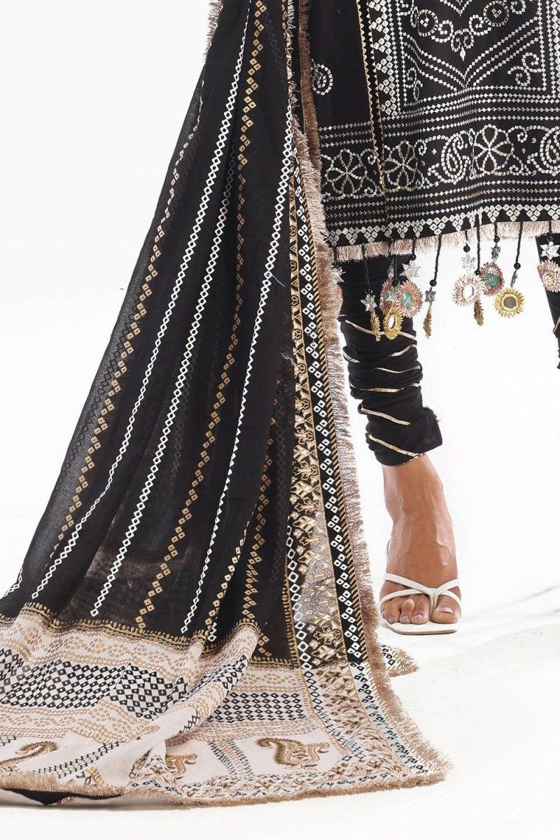 2. Unstitched suits include fabric and patches only as mentioned in the description above (not Embellishments e.g. tassels etc).