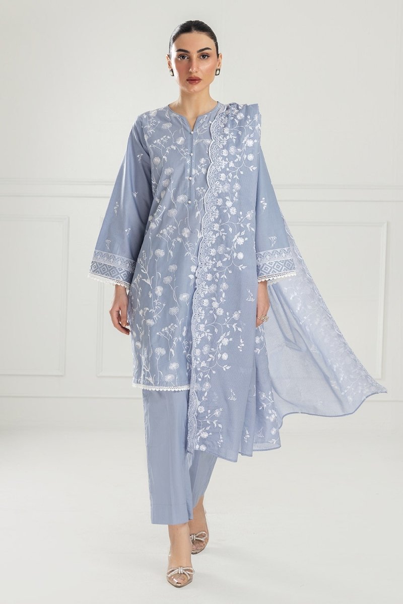 Gul Ahmed 3 Piece Unstithed Embroidered Lawn Suit with Embroidered Denting Lawn Dupatta DN-52005