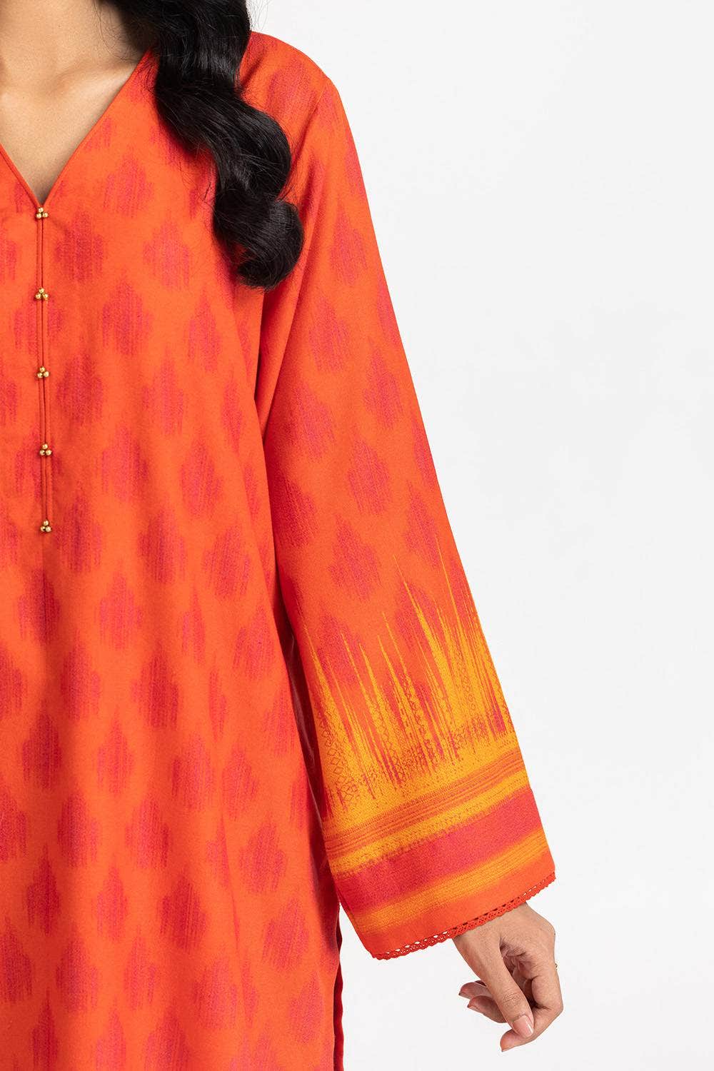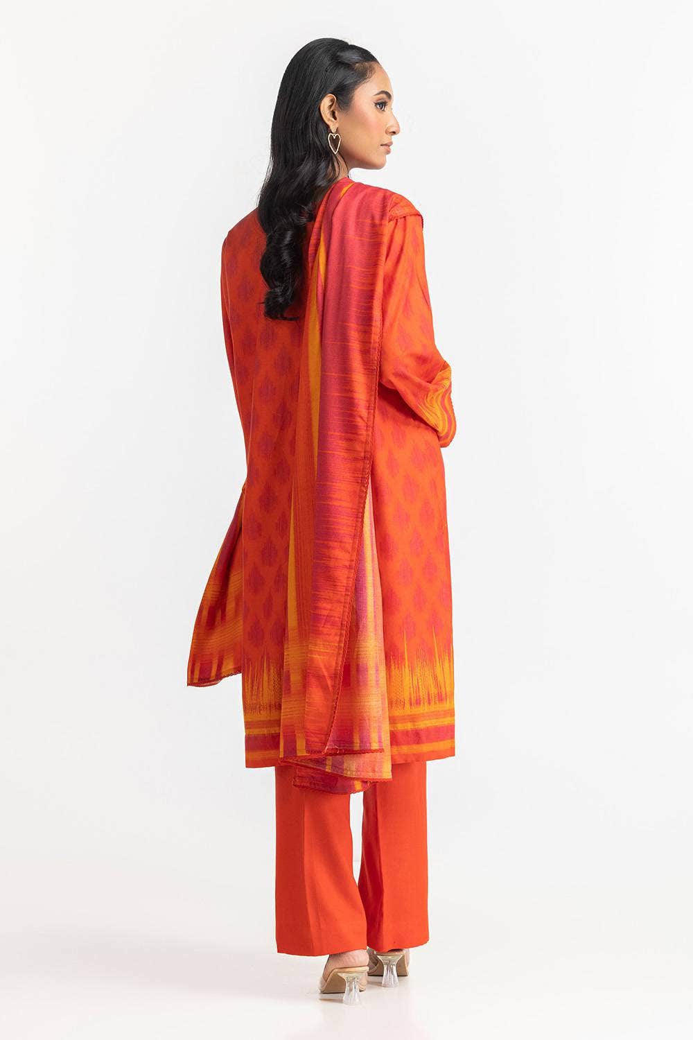 Ready to wear A vibrant 3PC orange and yellow blend, this outfit brings warmth and energy to your wardrobe. With its traditional patterns, wide leg trouser and comfortable fabric, it’s perfect for a bold, standout look.