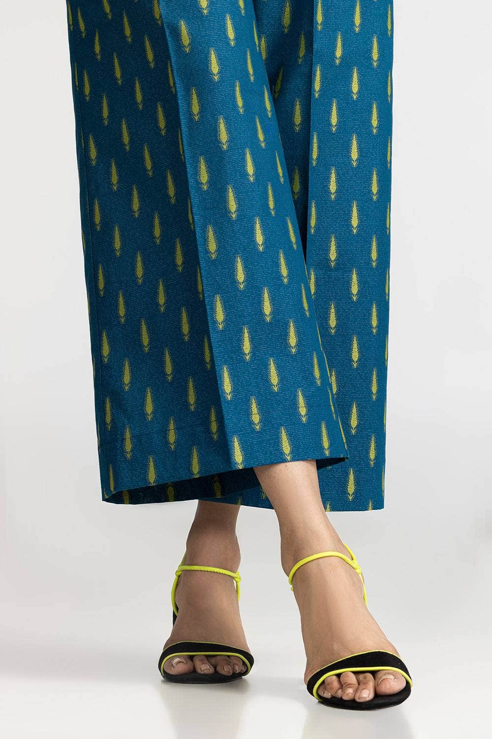 Ready to wear This blue kurta has a round neck with straight sleeves. The bell bottom trousers and matching printed dupatta give a stylish, contemporary twist to this traditional ensemble.