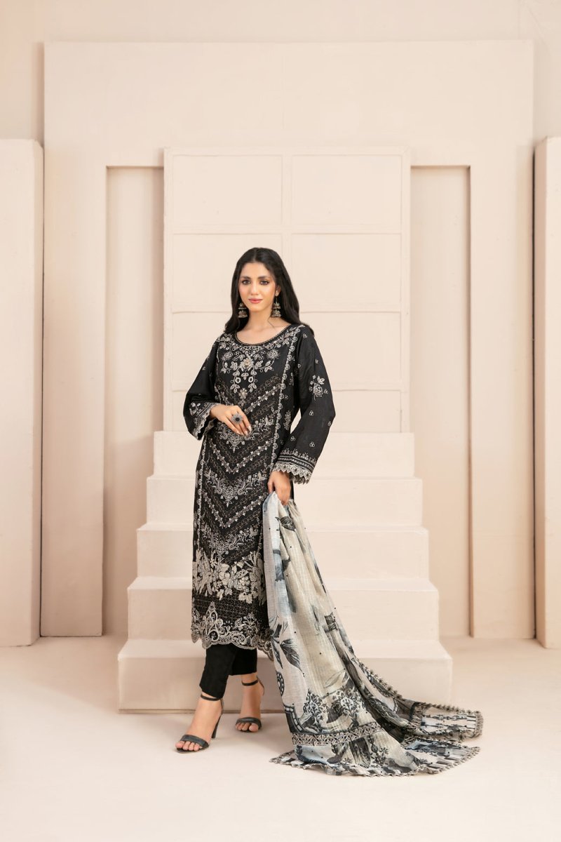 Tawakkal Fabrics 3 Piece Stitched Fancy Embroidered Viscose Plain/Jacquard Suit D-9531