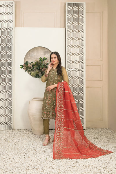 Tawakkal Fabrics 3 Piece Stitched Fancy Heavy Embroidered Net Suit - D-1220