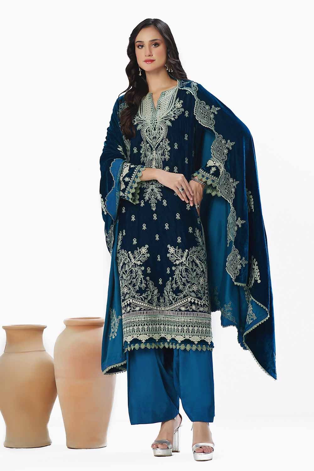 Gul Ahmed 3 Piece Unstitched Embroidered Velvet Suit with Embroidered Velvet Dupatta WV-42004
