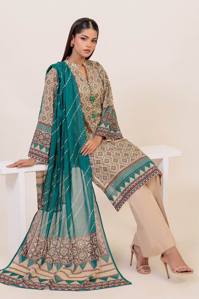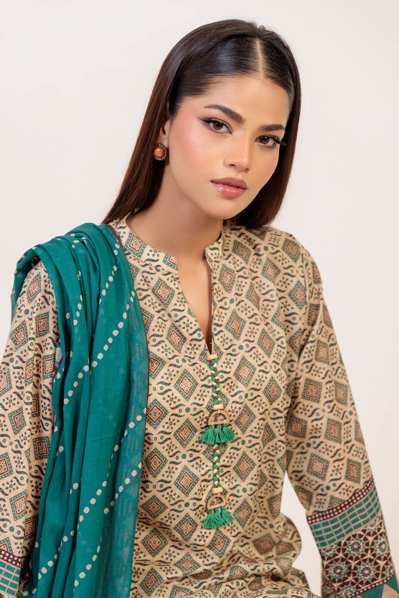Ready To Wear Bonanza 3 Piece Digital Printed Lawn Suit - 1S24P3P815-Sand Block