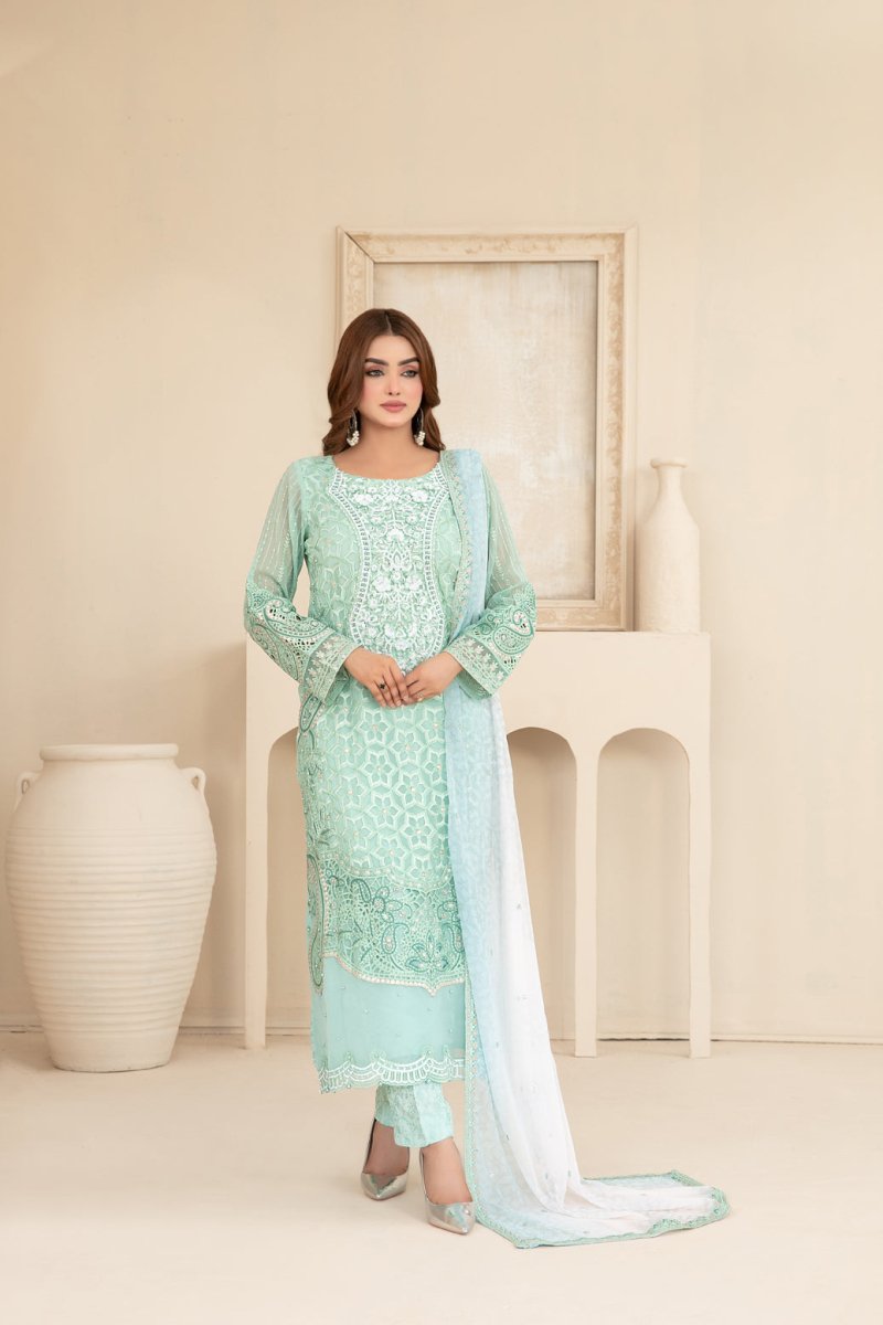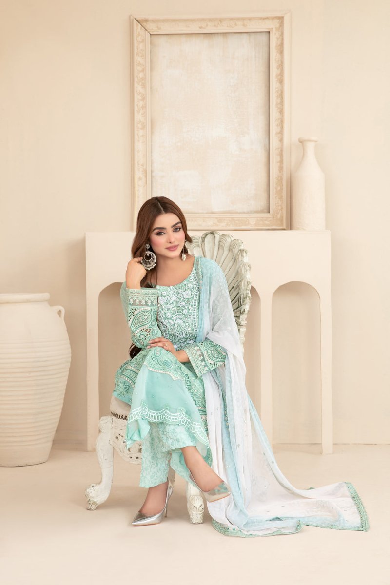 Tawakkal Fabrics 3 Piece Stitched Fancy Exclusive Embroidered Chiffon Suit - D-3941