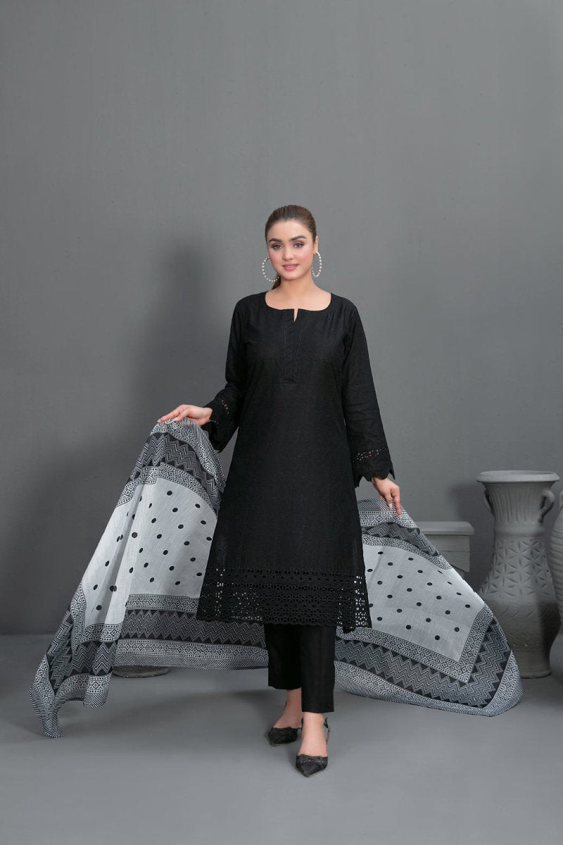 Tawakkal Fabrics 3 Piece Stitched Schiffli Embroidered Suit - D-3572