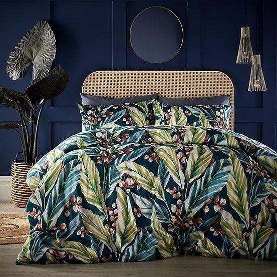 Fall into a deep comfortable sleep under this rich dark leaf pattern with a moody midnight ambience. The duvet set includes one pillowcase with the single and two with the double, king and super king.
